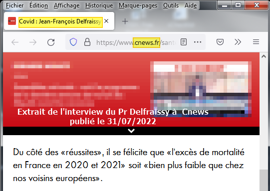 Parmi les instances mises en œuvre durant l'état d'urgence sanitaire, il y eut, jusqu'au 31 juillet 2022, le conseil scientifique présidé par le Pr. Delfraissy. A ce titre, il donnait une dernière interview, dont l'une des déclarations qui lui est attribuée est cocasse tant elle est à rebours de la réalité.
